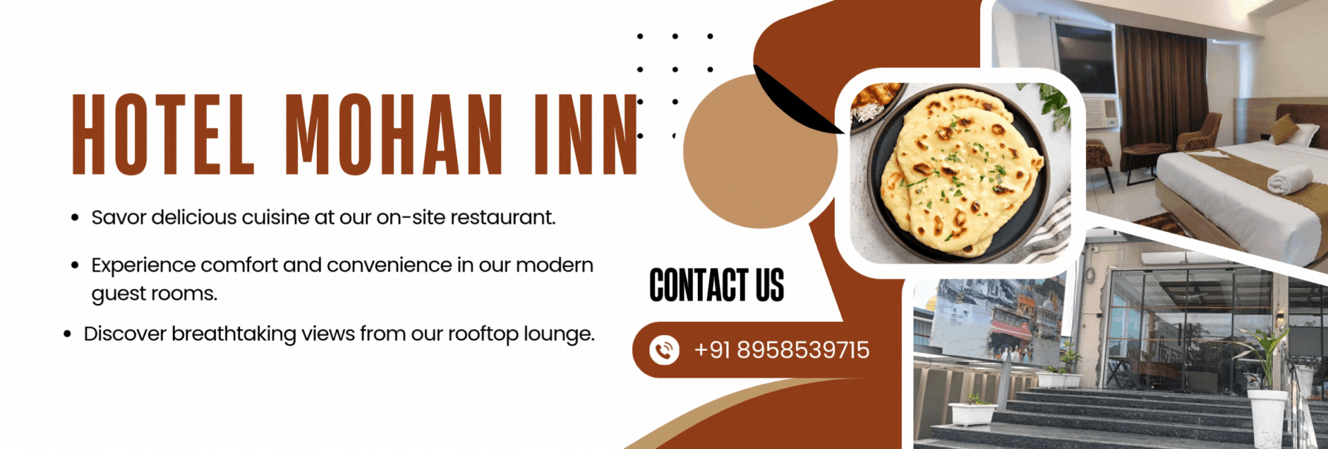 The Hotel Mohan Inn is well fitted with loads of general amenities. Hotel has 24 hrs Hot & Cold running water facility. The hotel also has Wi-Fi Internet facility along with Direct Dial Local, STD & ISD to facilitate your business or personal needs during the stay.